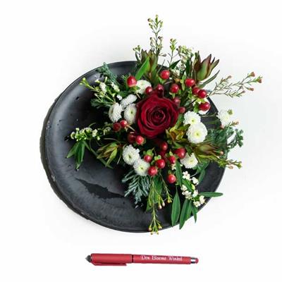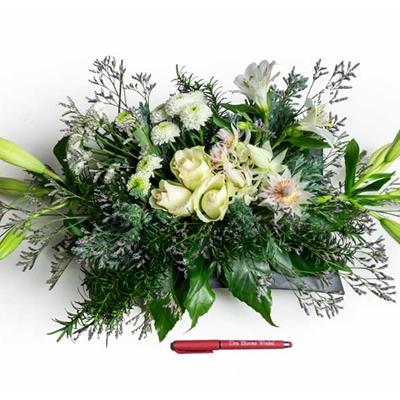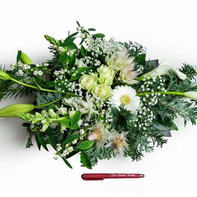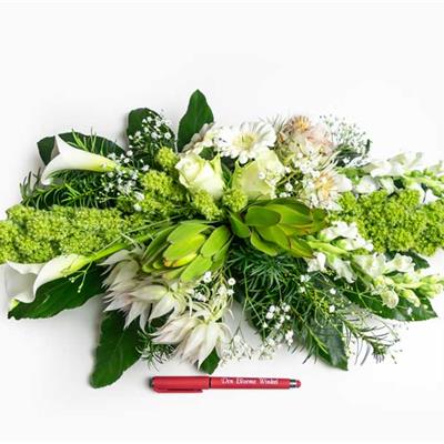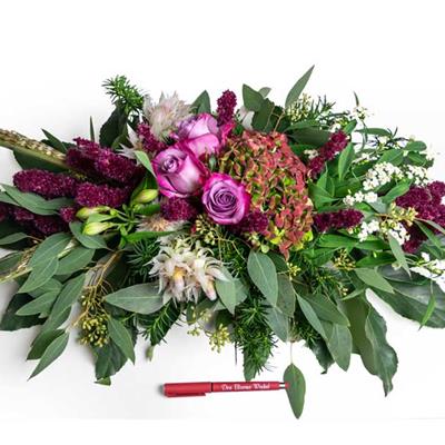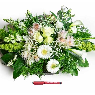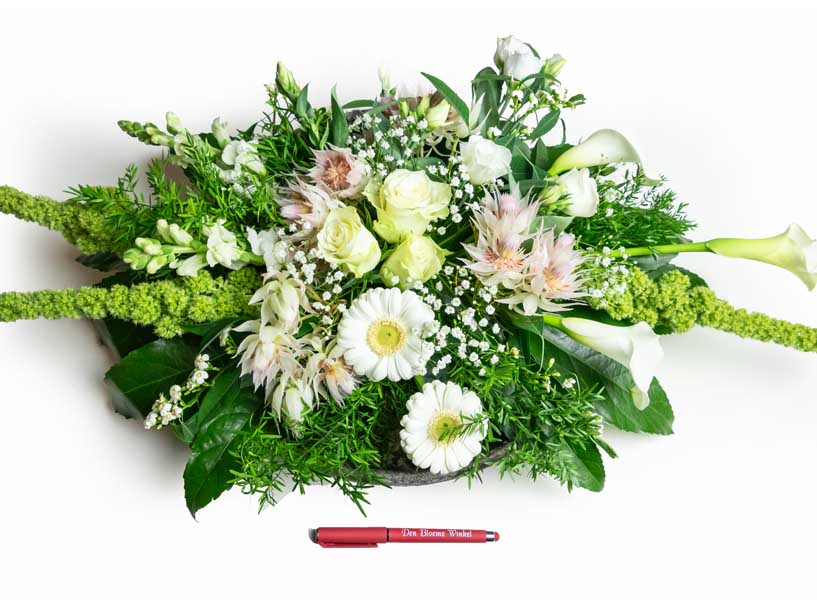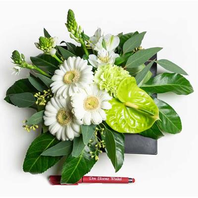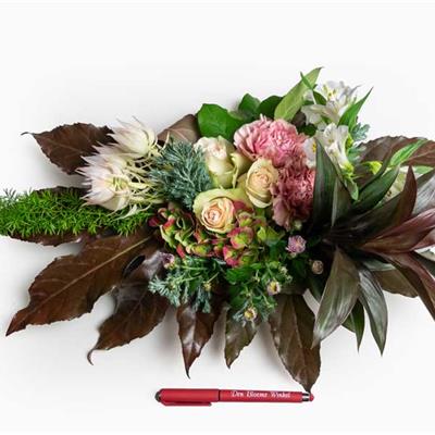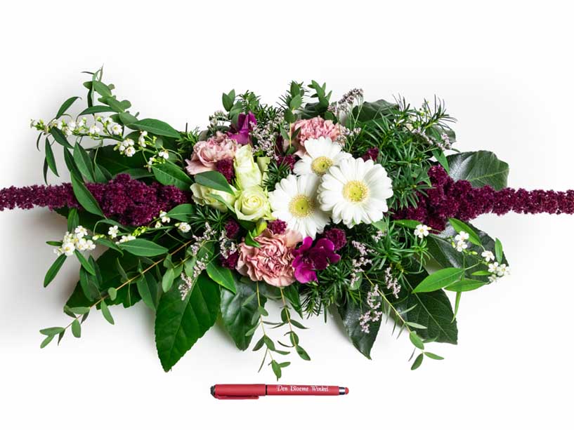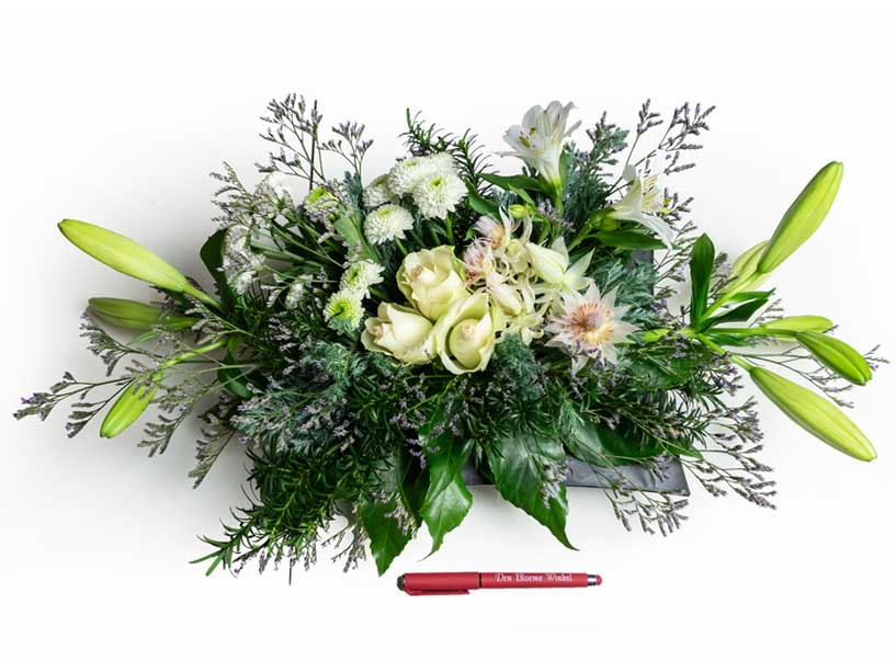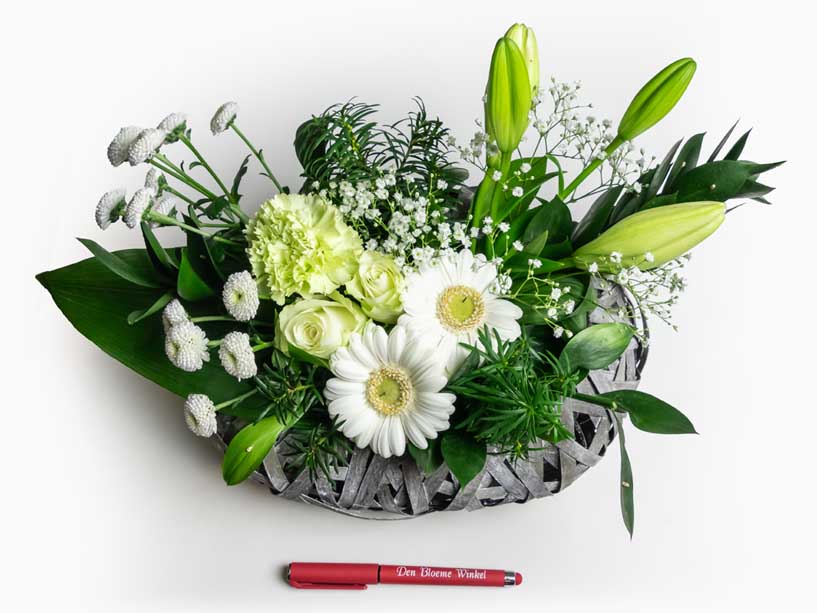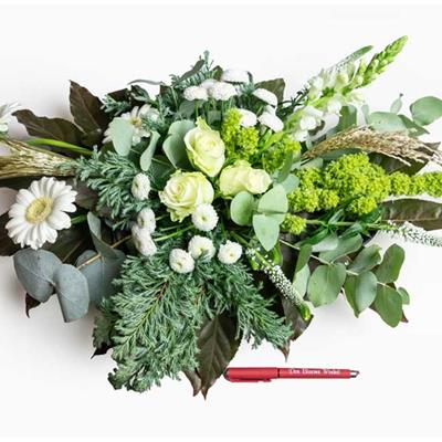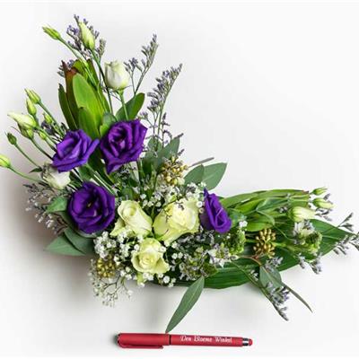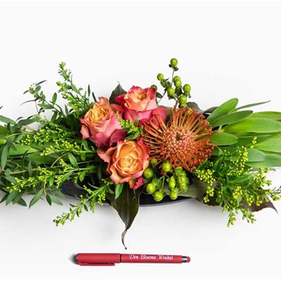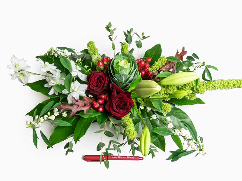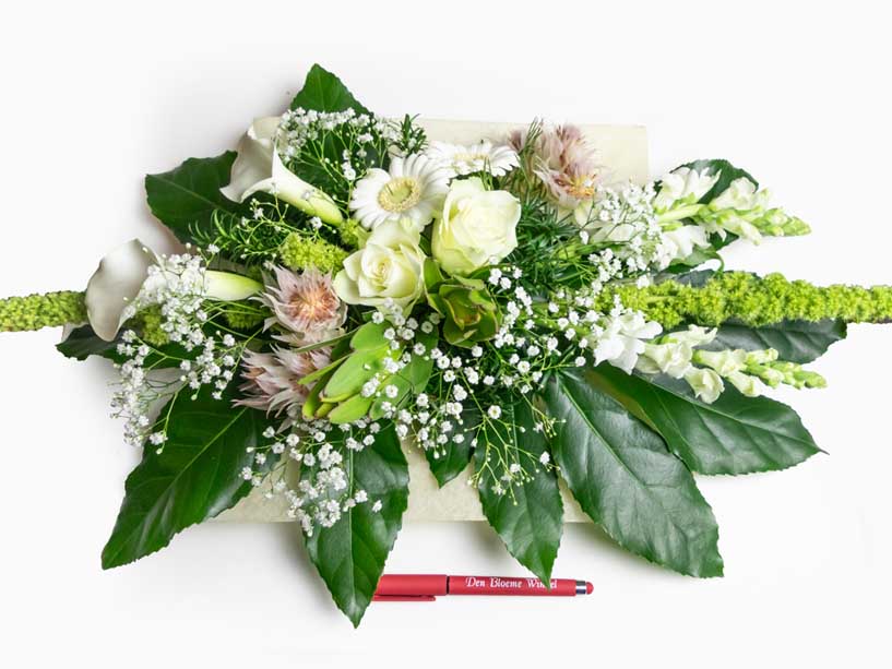 - Het rouwlabel is inclusief. Kies bij ‘wenskaartje’ voor rouwlabel.
