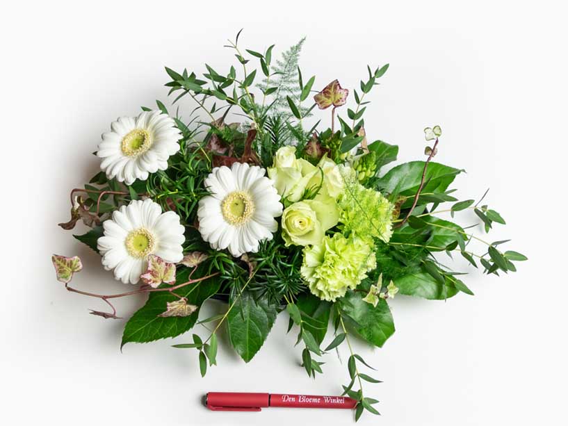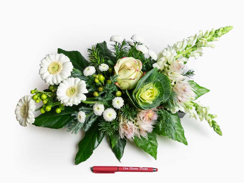 - Wij werken met seizoensgebonden bloemen. Kleine verschillen met de voorbeeldstukken zijn mogelijk.